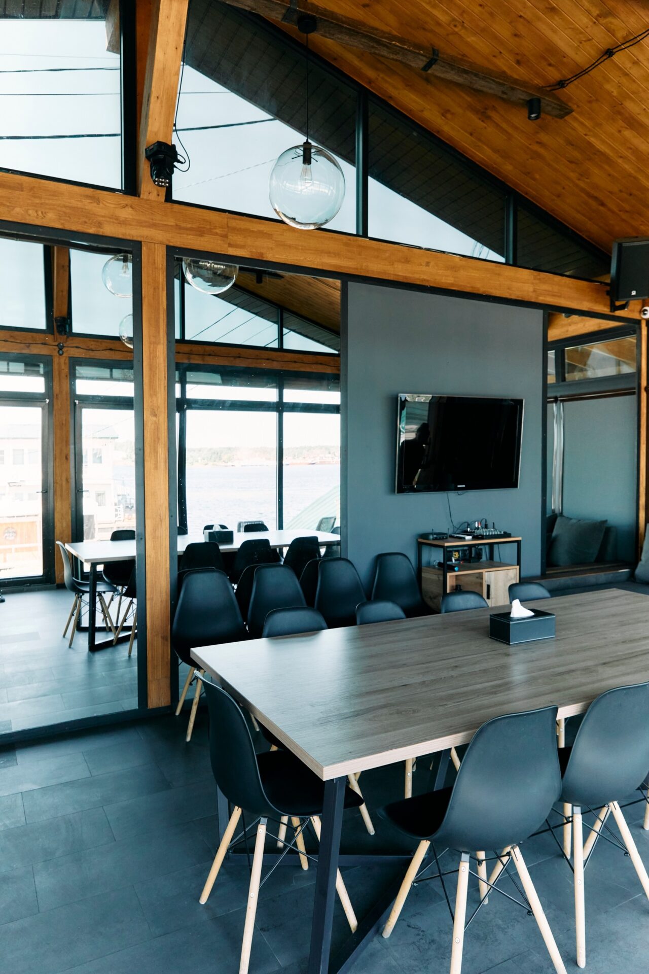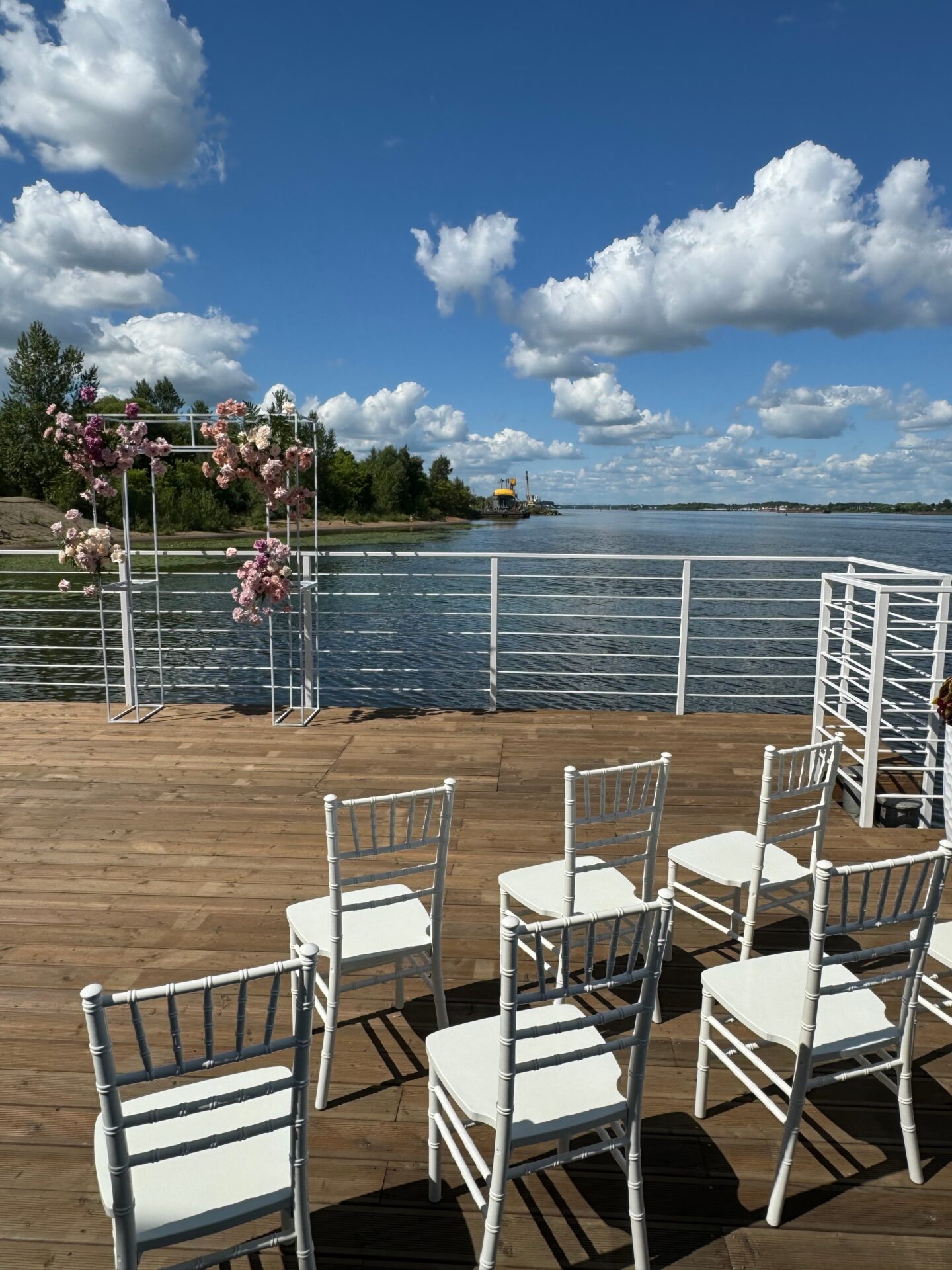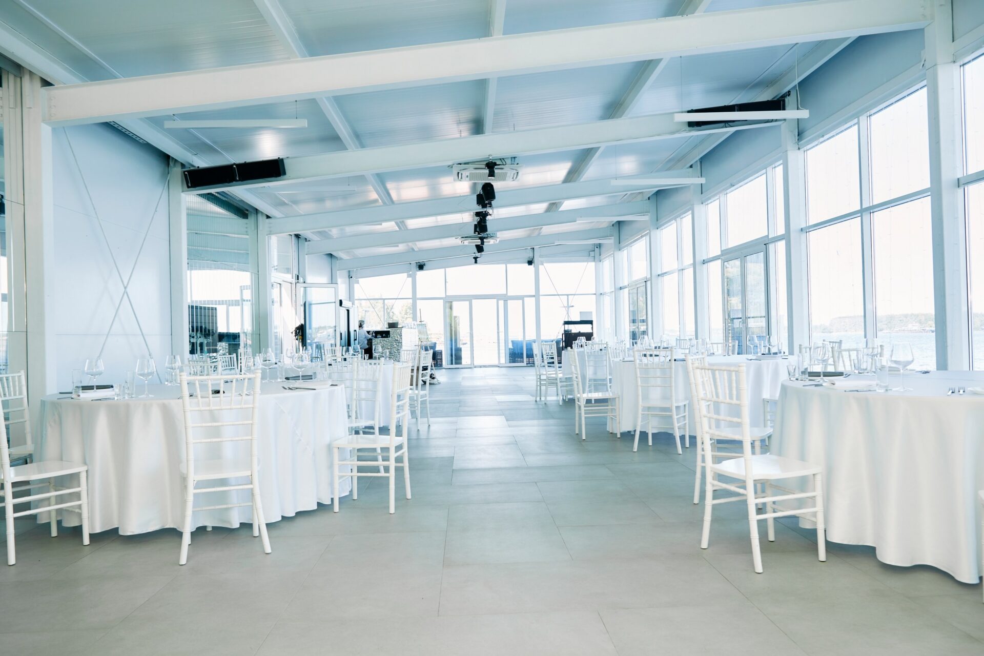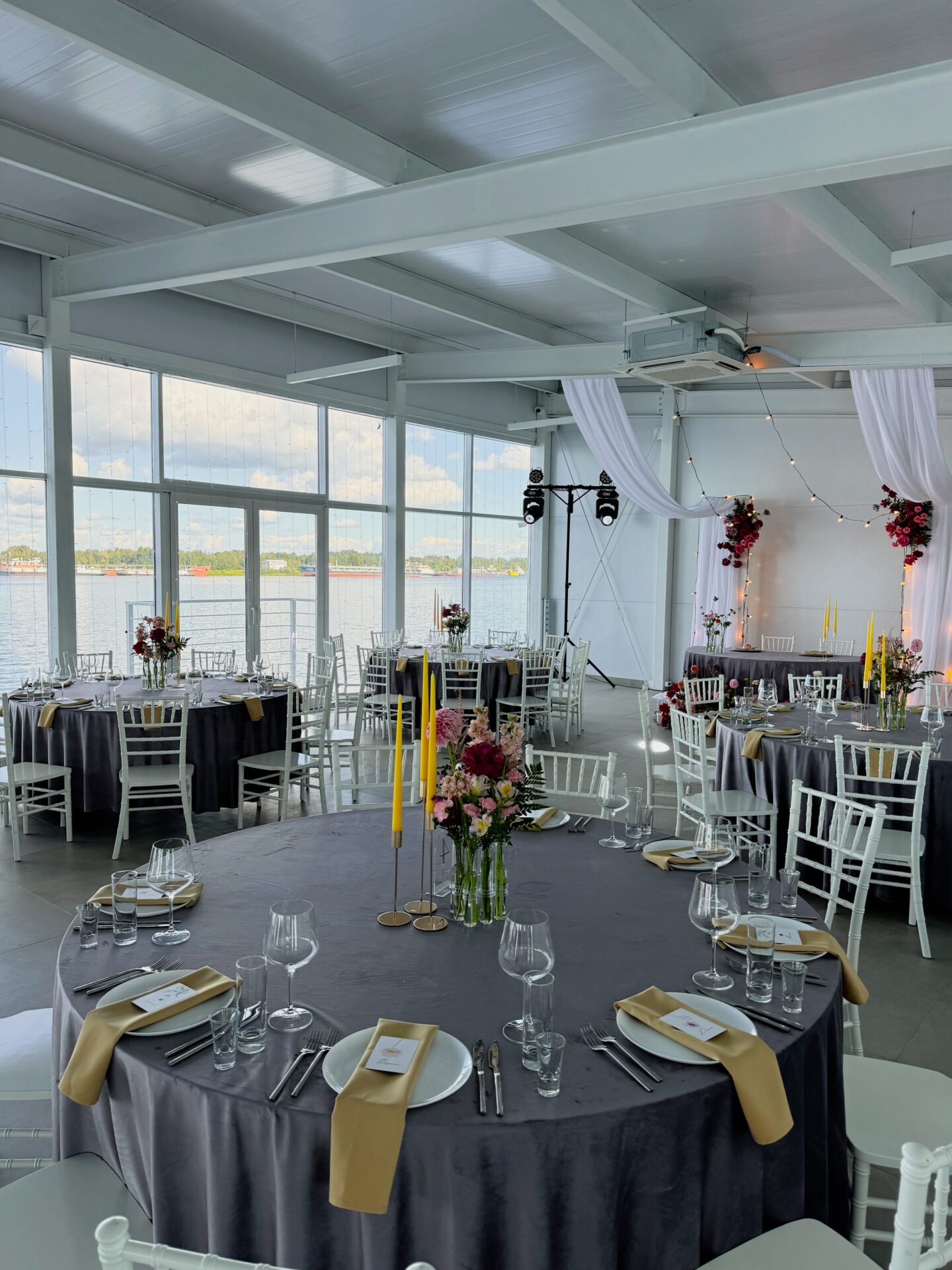 Банкетный зал на воде с панорамным видом на Волгу. Выход на летнюю веранду под открытым небом. Вместимость 100-120 человек.